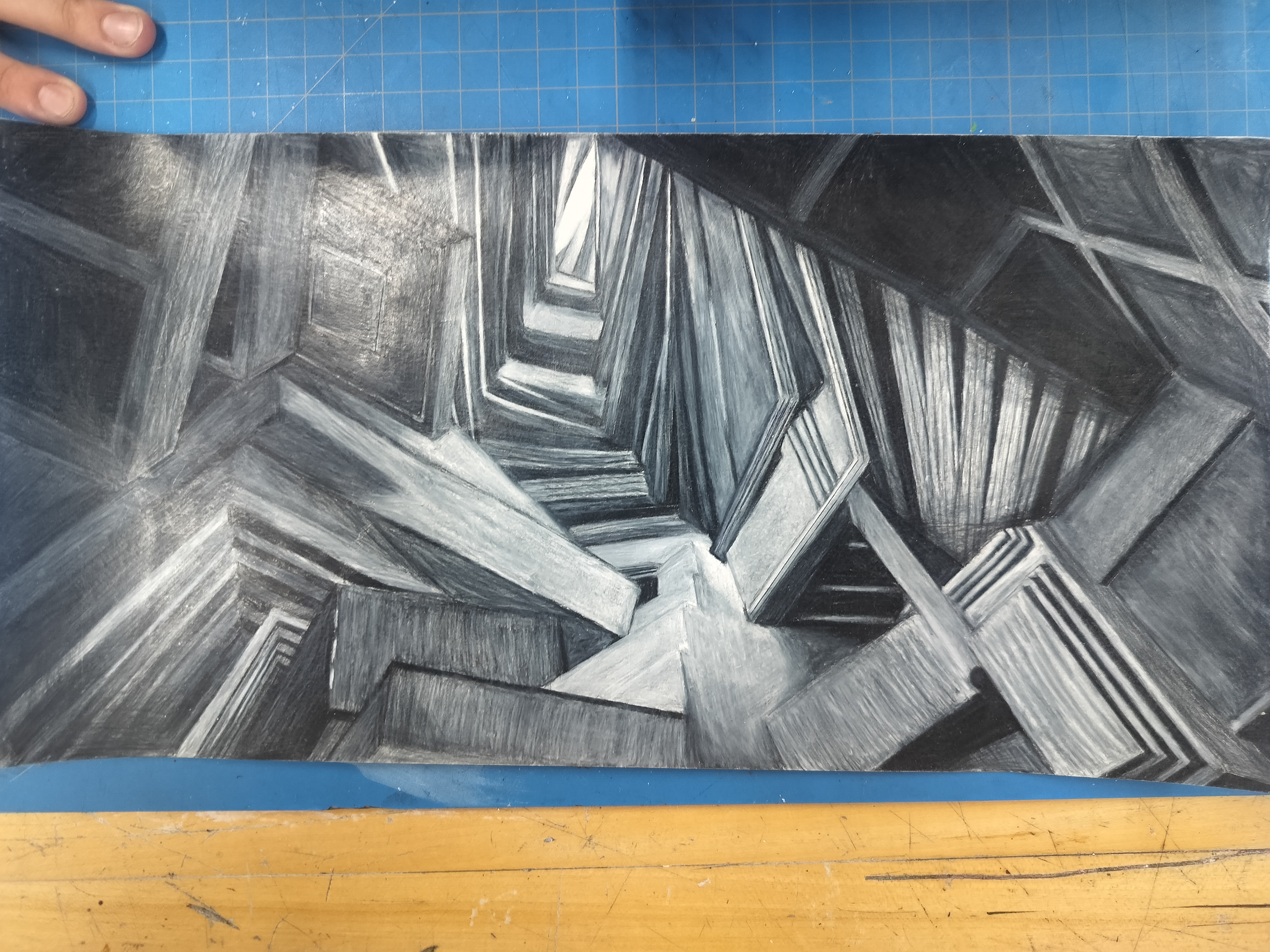 Shatter, Acrylic, Pencil on Paper, Yarn.